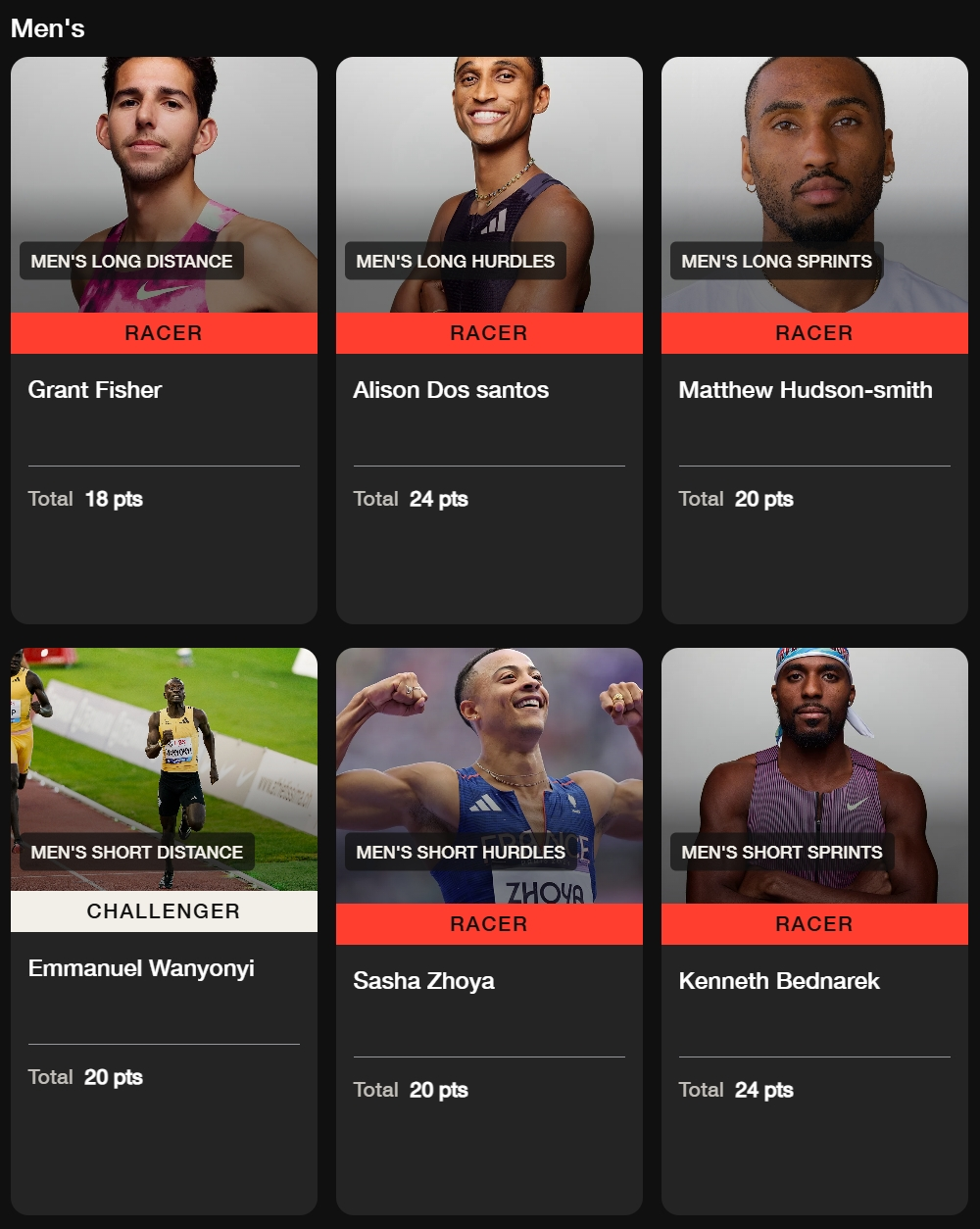 • Men’s Long Sprints: Matthew Hudson-Smith (Great Britain).