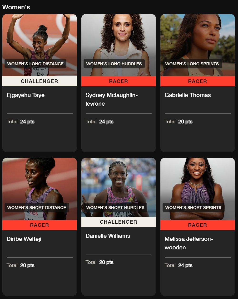 • Women’s Long Distance: Ejgayehu Taye (Ethiopia).